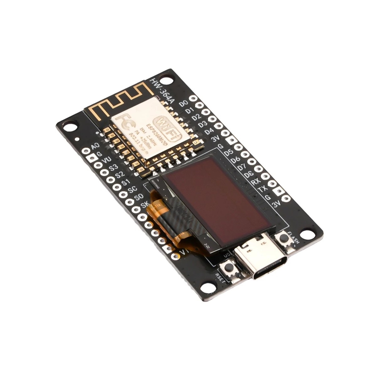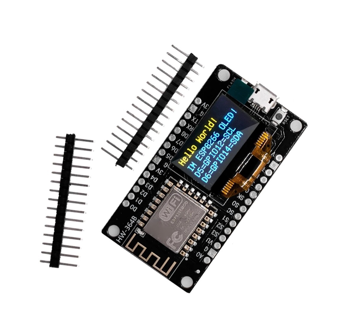 NodeMCU + 0.96 OLED - плата на базе wi-fi модуля ESP8266 и USB-UART на CP2101, а также на плате уже имеется 0,96 OLED дисплей, упрощающий создание проектов, где необходимо отображение данных в режиме реального времени, что значительно уменьшает и размеры проекта.