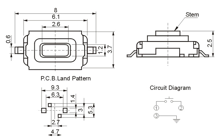 Характеристики Тактовая кнопка TS-021 3x6x2,5mm BLACK SMD