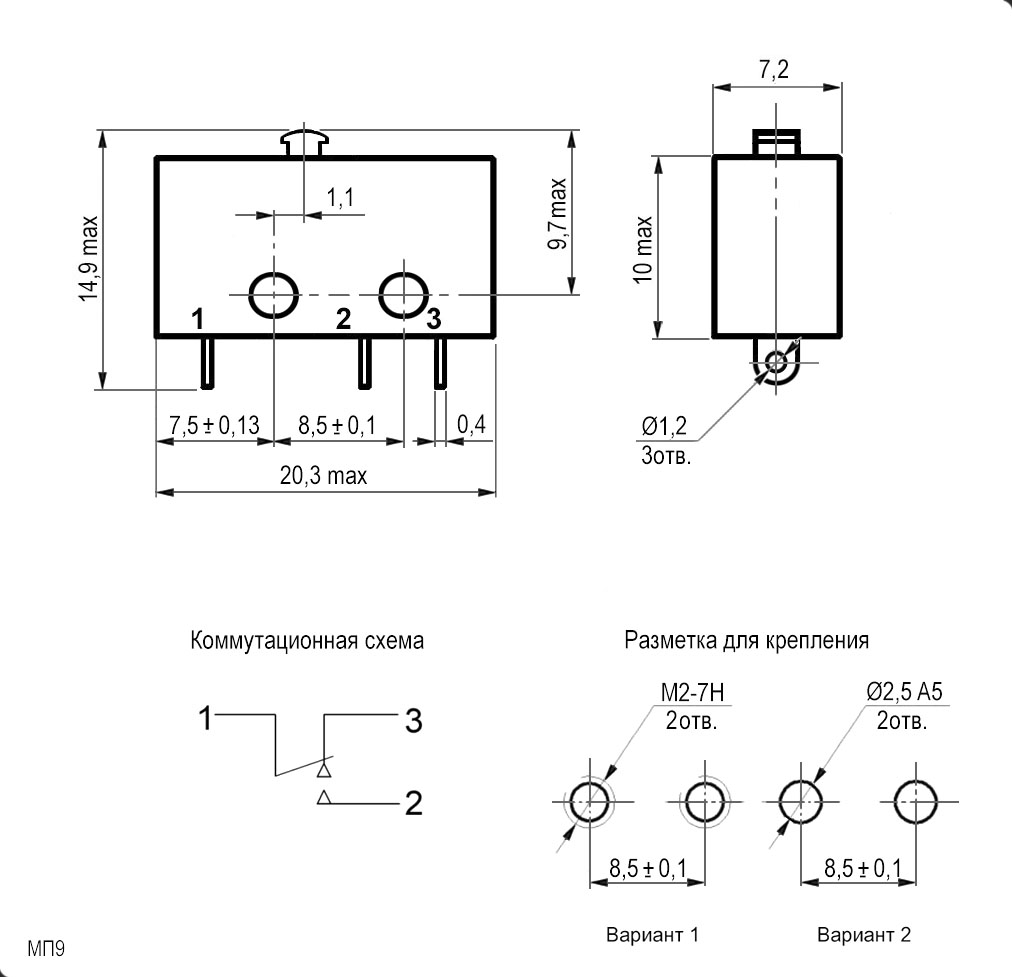 Диэлектрическая прочность : 1500 (50 Гц, 1 мин.)
