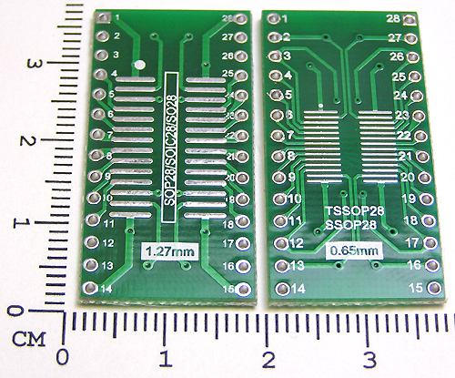 Макетная плата для микросхем в корпусе SOIC28 и SSOP28 с шагом 1.27мм и 0.65мм