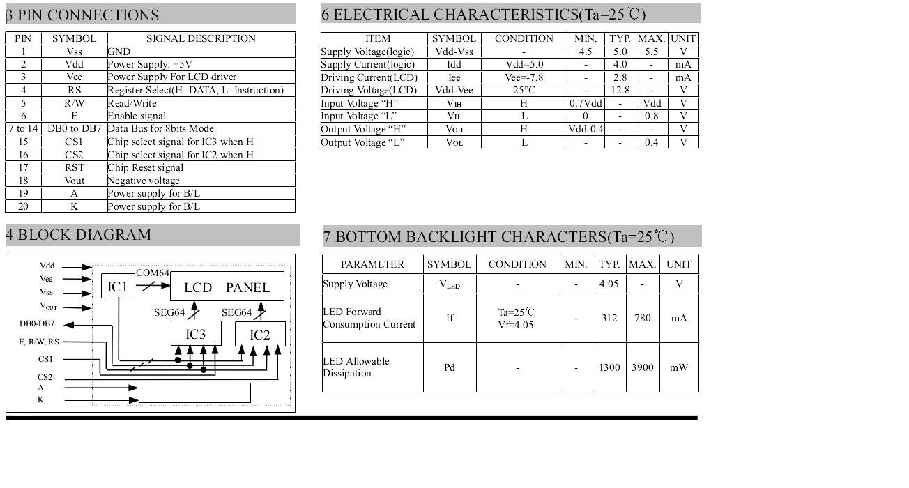 Характеристики Графический LCD 128x64 с подсветкой WM-G1206A