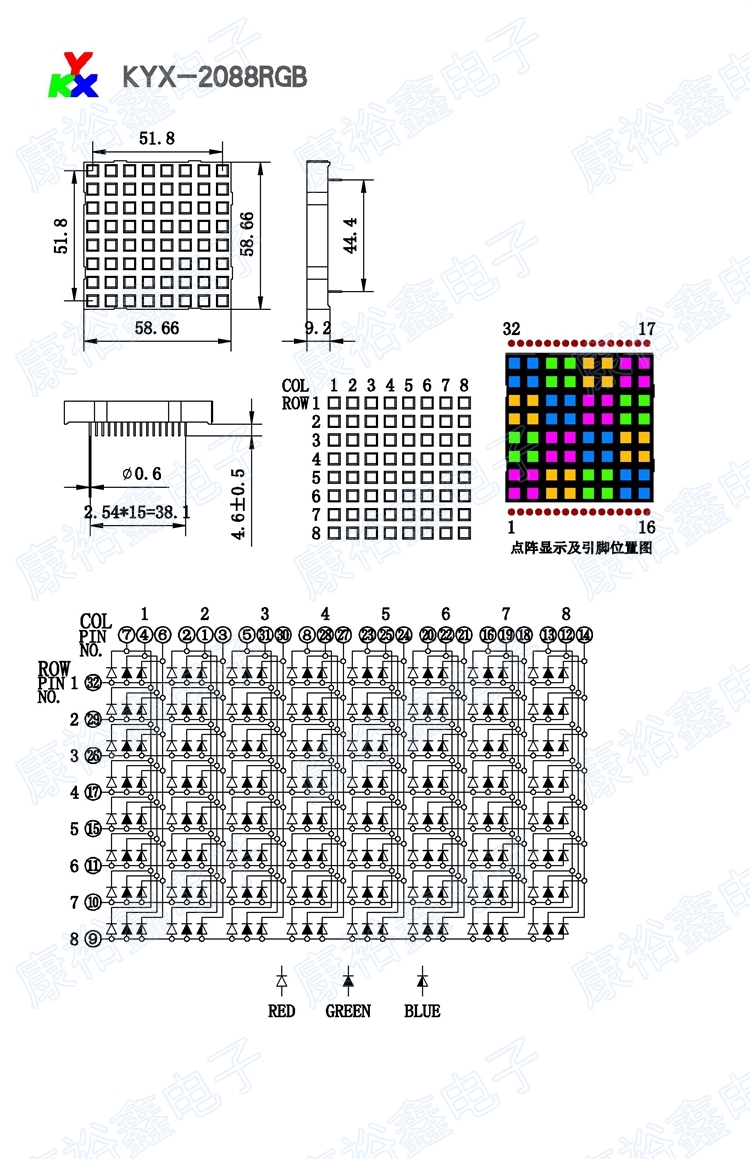 Характеристики RGB Светодиодная матрица 8x8 квадратные светодиоды