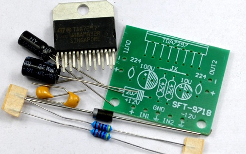 Набор для сборки модуля стерео усилителя на микросхеме TDA7297, мощностью 15 Вт на канал.