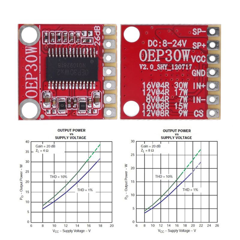 6. Выходная мощность: 30 Вт/8 Ом/24 В; 15 Вт/8 Ом/16 В; 22 Вт/4 Ом/16 В; 15 Вт/4 Ом/12 В;