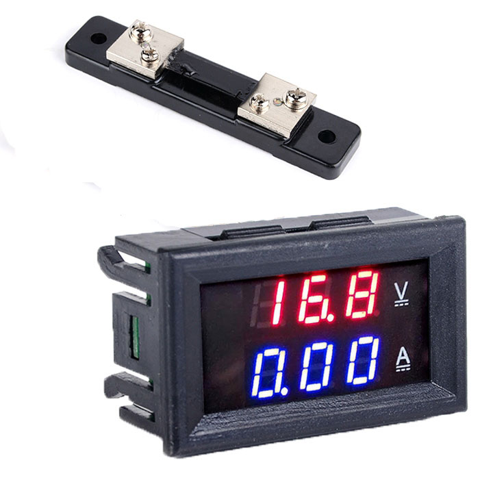 Модуль амперметр (синий) + вольтметр + шунт 0-100В 100А