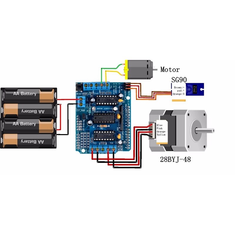 Управление двигателями осуществляется двумя микросхемами L293D. Каждая микросхема – это четырёхканальный драйвер со встроенными обратными диодами для защиты микросхемы от перенапряжений при работе на индуктивную нагрузку.