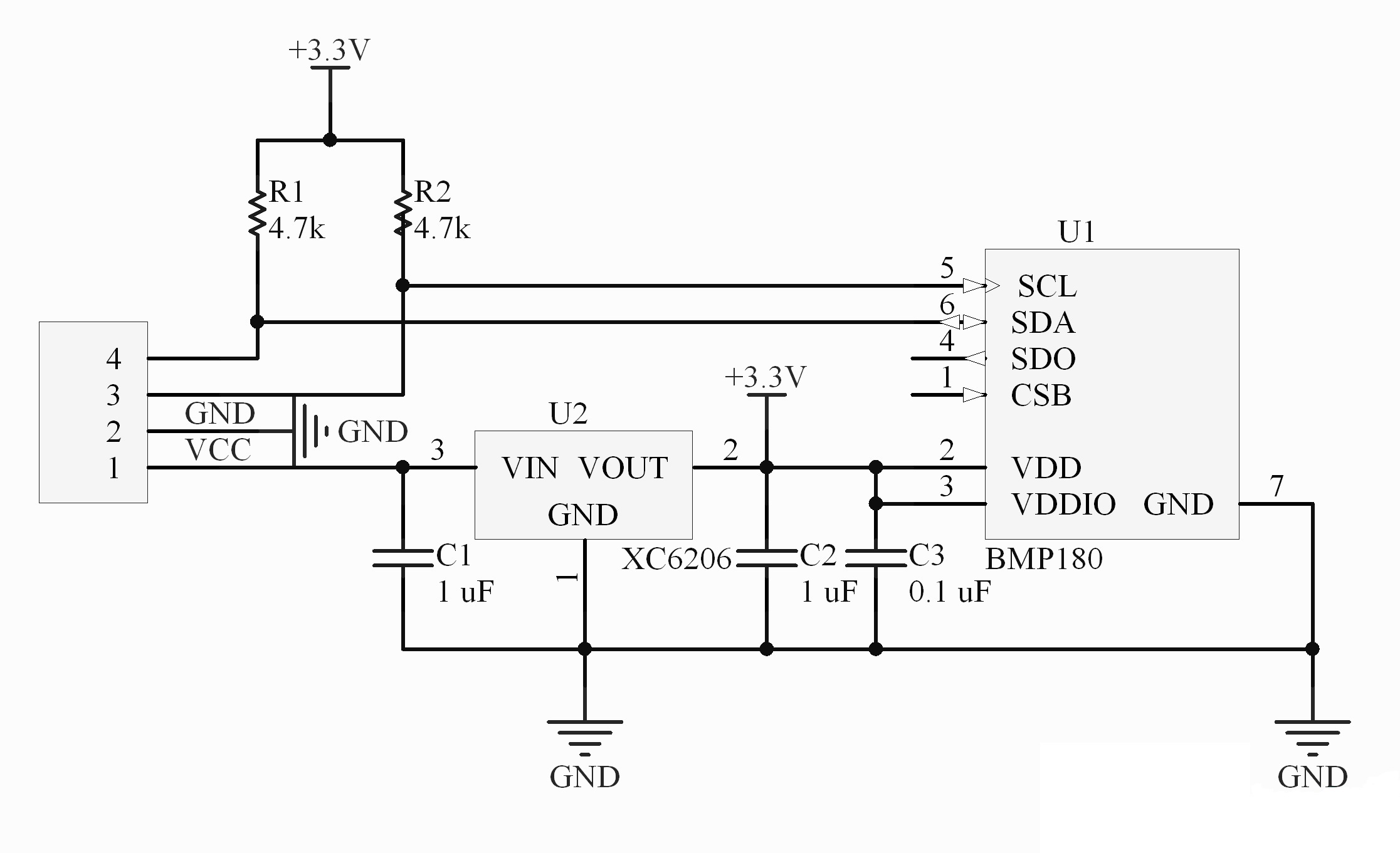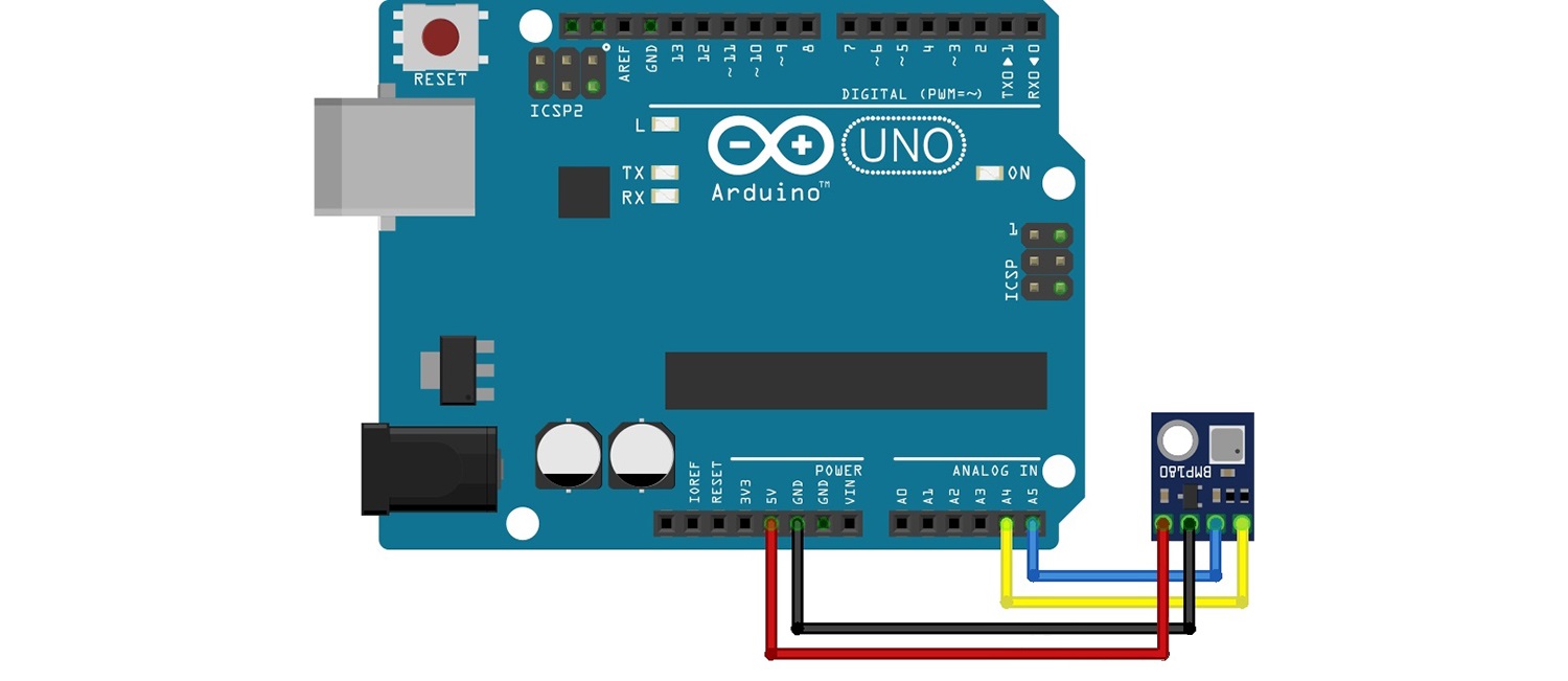 Принципиальная схема датчика BMP180, показана ниже.