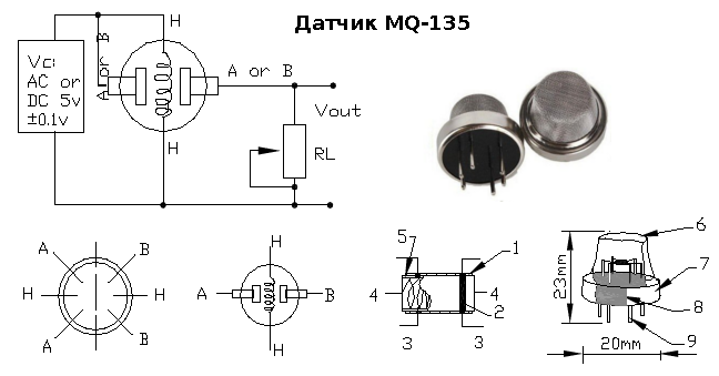 Типы измеряемых газов: аммиак, дым, оксиды азота и углекислого газа, пары спирта и бензола