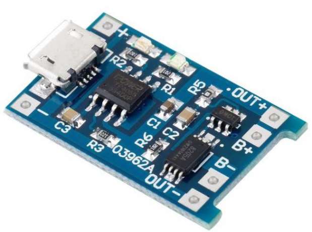 Модуль заряда аккумуляторов на микросхеме TP4056, с дополнительной защитой от токовой перегрузки и переразряда. Защита состоит из чипа DW01A, и транзисторной сборки 8205A. Плата выдерживает кратковременную переплюсовку. Защита от перегрузки по току двухступенчатая: срабатывает при нагрузке 27 А в течении 3 мкс, или же при токе 3А в течении 10 мс. Защита от переразряда срабатывает при падении напряжения от аккумулятора до 2.39 В.