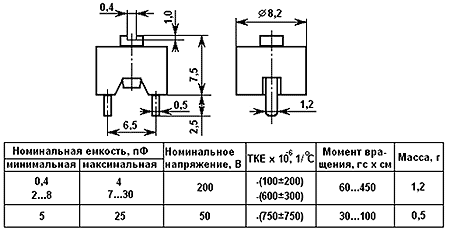 Характеристики Конденсатор подстроечный 3-60 пФ