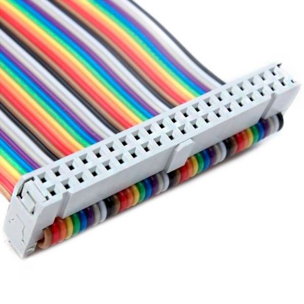 Шлейф имеет ширину 5.5 см и 21 см длину. Он отлично встаёт на 40-пиновую гребёнку контроллера. Из 40 pin у Raspberry Pi 12 приходятся только на общие пины и пины питания. Также 27 и 28 пины используются под платы расширения. Таким образом, по факту выходит только 28 GPIO-пинов.