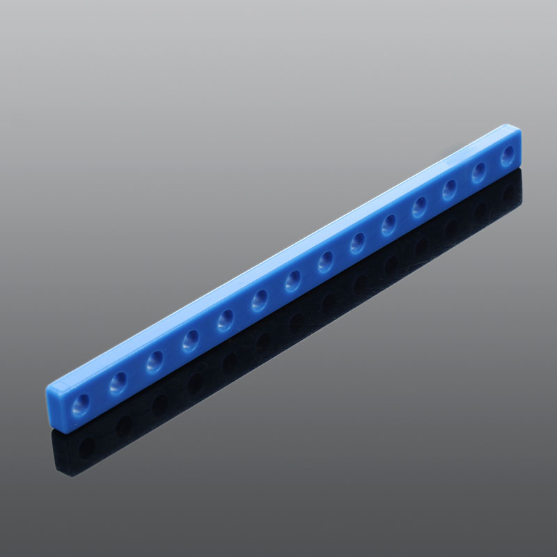 Прочная пластиковая пластина синего цвета с одним рядом отверстий.