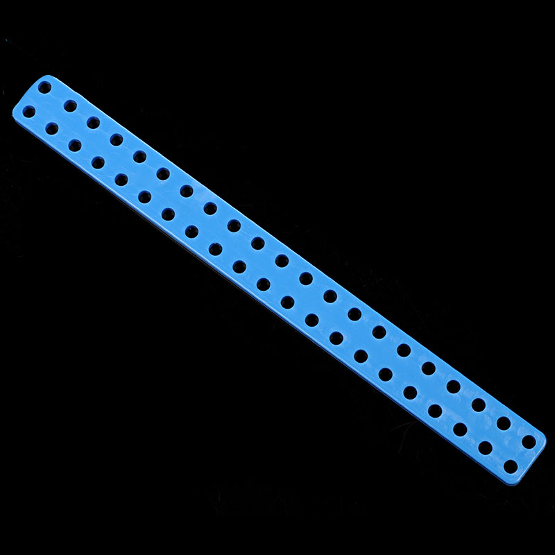 Прочная пластиковая пластина синего цвета с двумя рядами отверстий.