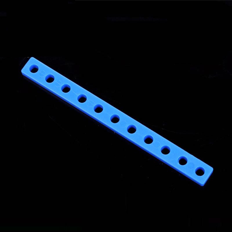 Прочная пластиковая пластина синего цвета с одним рядом отверстий.