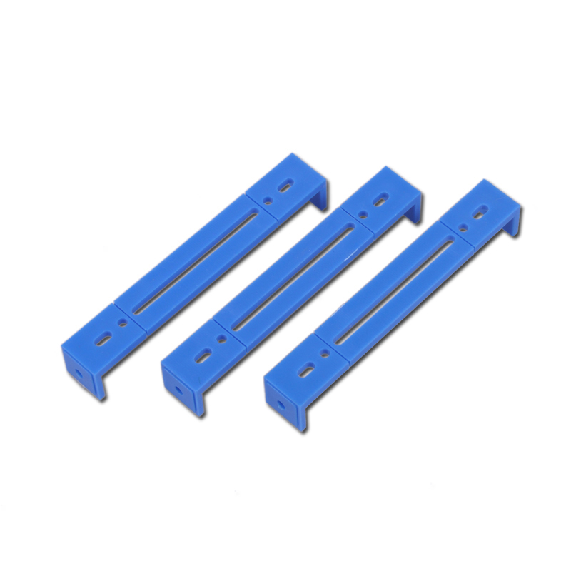 Прочная пластиковая скоба синего цвета с одним рядом отверстий.