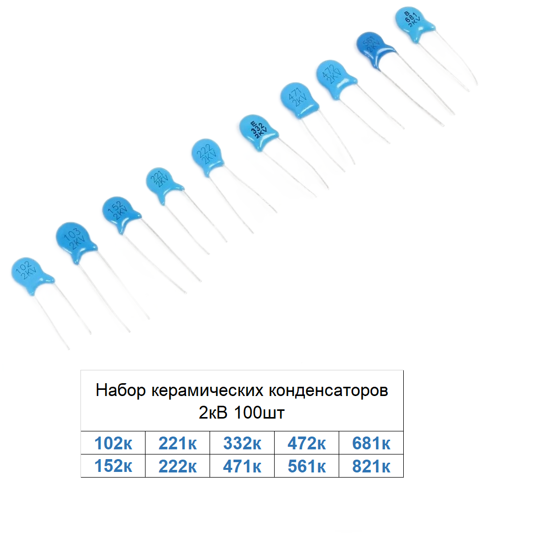 Характеристики Набор керамических конденсаторов 2кВ 100шт