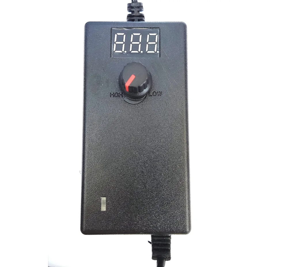 Универсальное устройство для питания бытовых электроприборов, оснащенное регулировкой напряжения. Регулятор и цифровой дисплей на корпусе адаптера позволяют вручную настроить выходное напряжение в пределах от 3 до 12В с шагом регулировки 0,1В. Максимальный выходной ток — 2А.