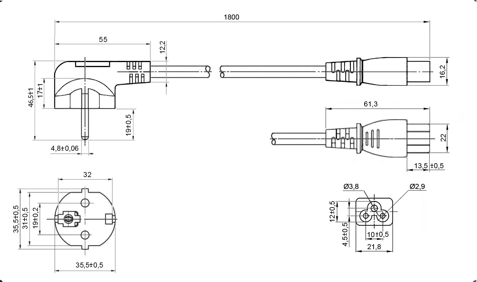 Шнур сетевой Евро 3х0.75мм² 1.8М (PVC) (с заземлением) (ноутбук) REXANT предназначен для подключения к сети переменного тока (AC) с напряжением 220B портативных компьютеров, ноутбуков, проекторов и других устройств, имеющих штыревой разъём типа C6. Данный шнур сетевой Евро (IEC cord) оснащен с одной стороны неразборной литой вилкой (евростандарт) с заземляющим контактом, с другой литым трёх контактным гнездовым разъёмом типа C5 (в обиходе называют «Микки Маус» или листом клевера) и трехжильным проводом с сечением жил 0.75мм². Основные характеристики: