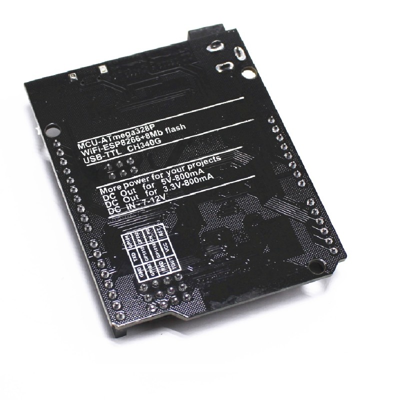Представляет собой модернизированную версию платы Arduino UNO. Полная интеграция на одной плате микропроцессора ATmega328 и чипа Wi-Fi ESP8266. Все модули могут работать вместе или каждый в отдельности. и у каждого своя распиновка подключения. Удобное решение для разработки новых проектов, требующих Wi-Fi. Через USB вы можете обновлять скетчи и прошивки как для ATmega328 так и для ESP8266. Для этого на борту имеется USB-serial конвертер CH340G. На плате имеется DIP-переключатель, для подключения модулей.