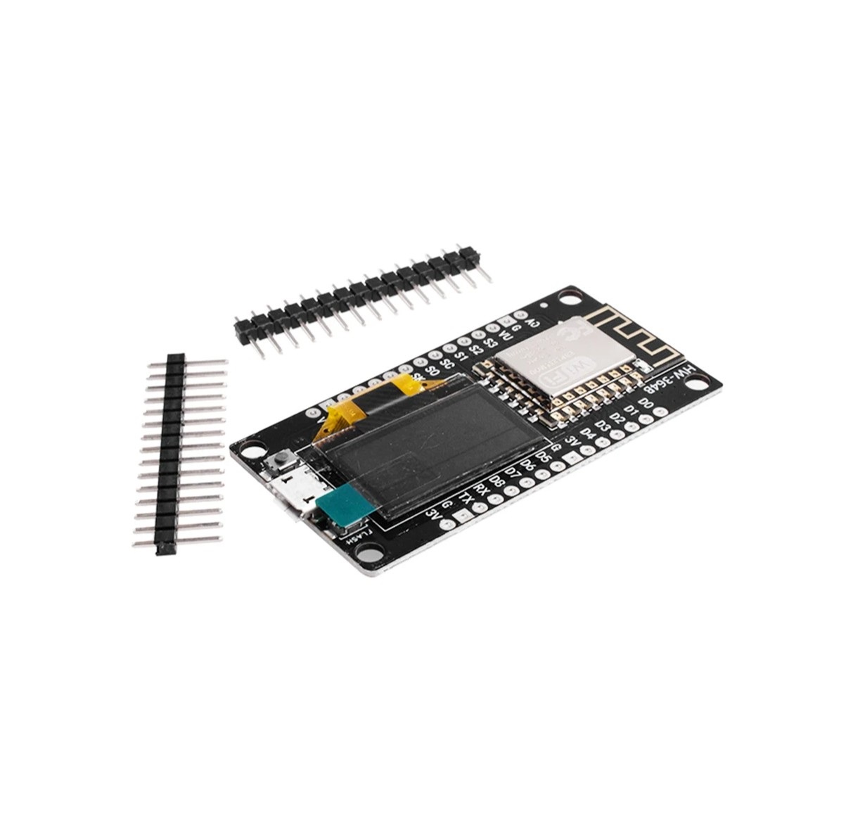NodeMCU + 0.96 OLED - плата на базе wi-fi модуля ESP8266 и USB-UART на CP2101, а также на плате уже имеется 0,96 OLED дисплей, упрощающий создание проектов, где необходимо отображение данных в режиме реального времени, что значительно уменьшает и размеры проекта.