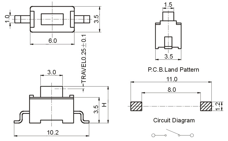 Характеристики Тактовая кнопка DTS-32 6x3x5mm SMD
