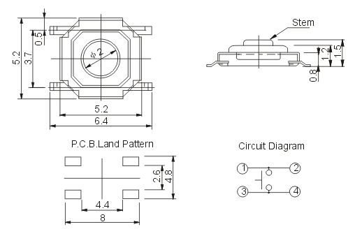 Характеристики Тактовая кнопка TS-030 4x4x2mm SMD