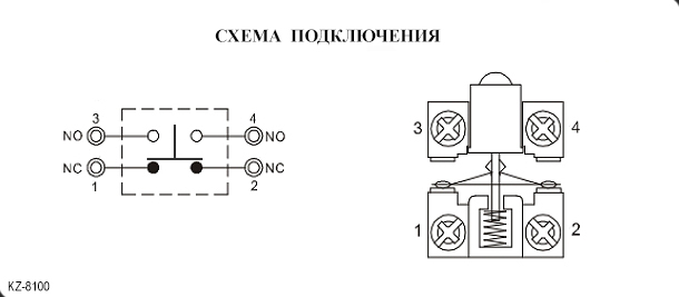 Тип : путевой выключатель с вертикальным нажимным роликом (PTmax=1,5 мм)