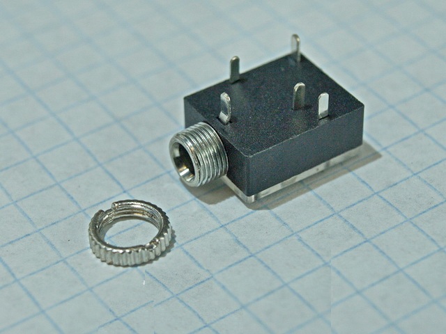 Гнездо на плату, с резьбой и гайкой для крепления на корпус.