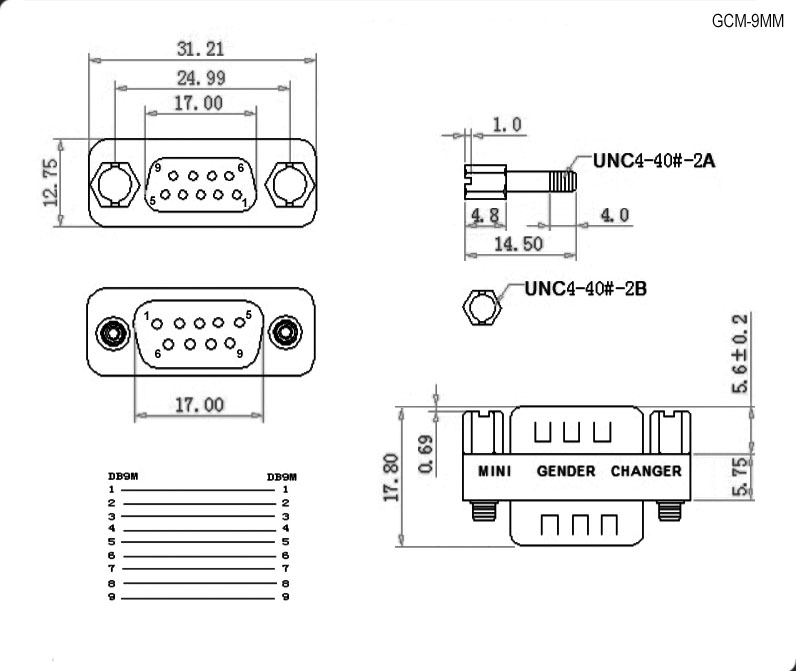 Характеристики D-SUB M-M переходник 9 pin