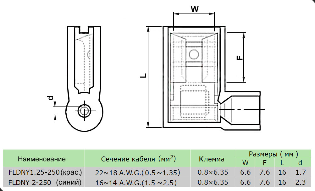 Тип клемм (наконечников) для обжатия : 0,8 х 6,35 мм