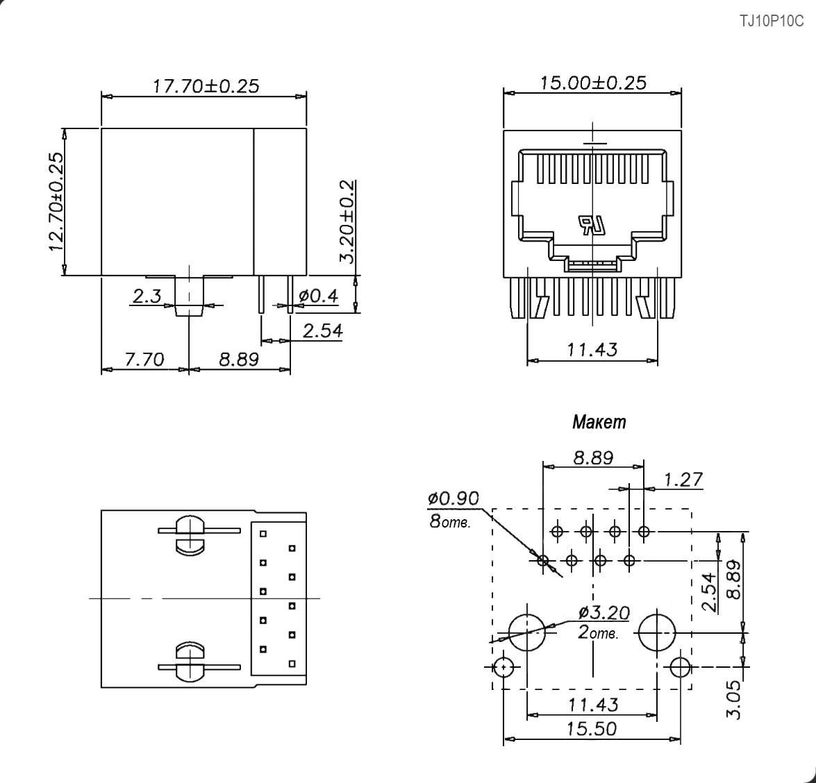 Тип разъёма : гнездо - розетка 10P10C UTP (неэкранированная)