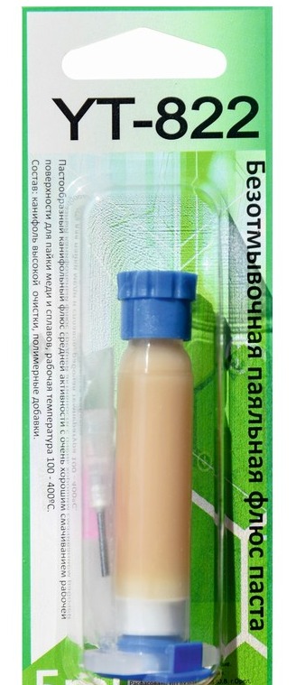 Характеристики Безотмывочная паяльная флюс паста YT-822 «YOSHIDA», картридж 10мл