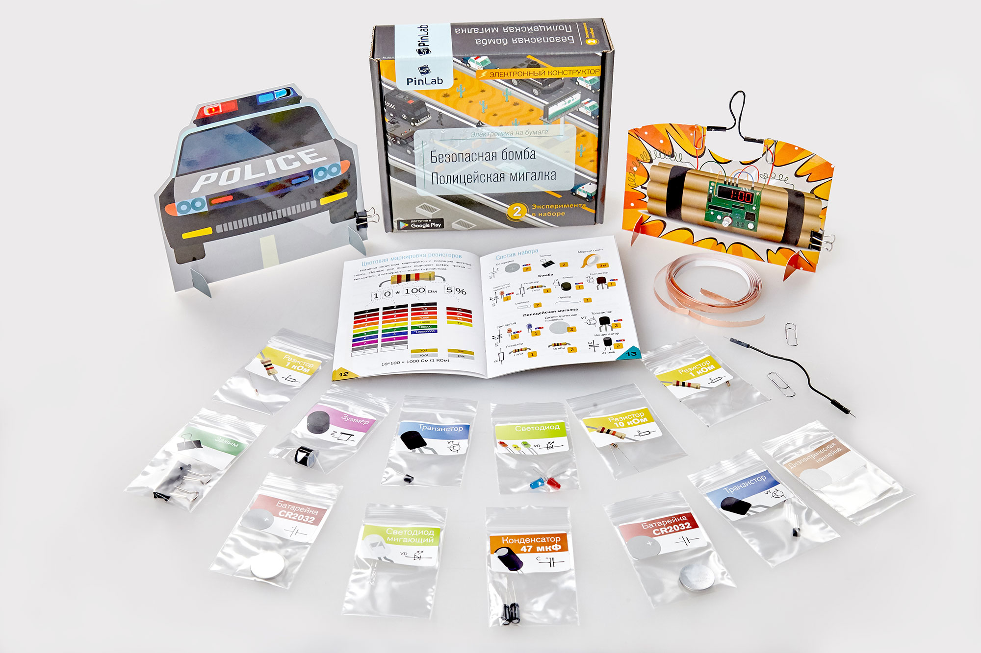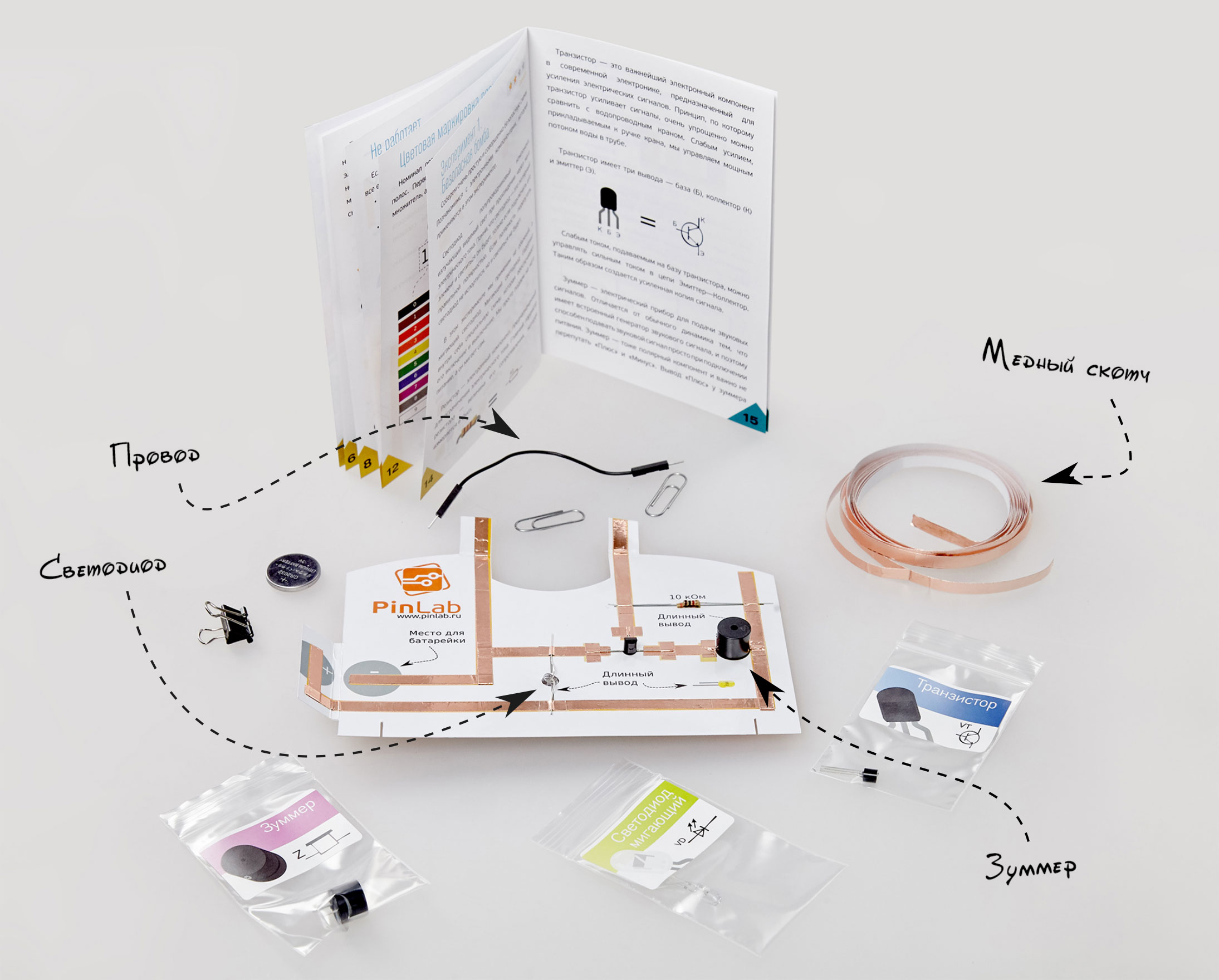 Набор из серии «Электроника на бумаге» поможет юному исследователю узнать о том, что такое электрический ток. Познакомит с электронными компонентами, такими как резистор, транзистор, светодиод и другие.
