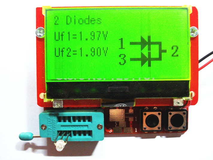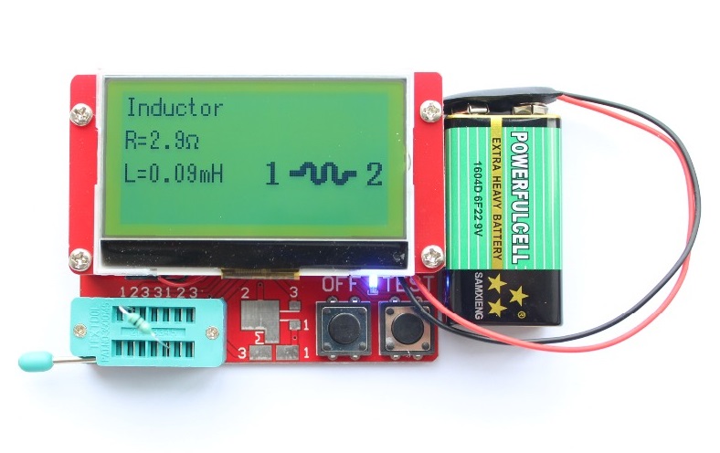 Автоматически определяет тип тестируемого компонента и отображает его распиновку на дисплее.