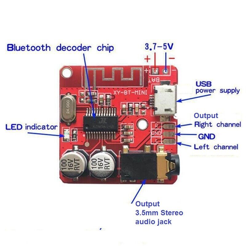 Функция версии Bluetooth V5.0, поддержка технологии автоматического подключения Bluetooth, поддержка WAV / WMA / FLAC / APE / MP3 декодирования без потерь, стереофонический двухканальный выход. При включении модуля красный светодиод в режиме поиска начинает мигать два раза в секунду. При успешном соединении, частота миганий падает до одного раза в пять секунд. Подключение и отключение модуля сопровождается звуковыми сигналами, оповещающими пользователя об изменении режима работы. Подключение: После в