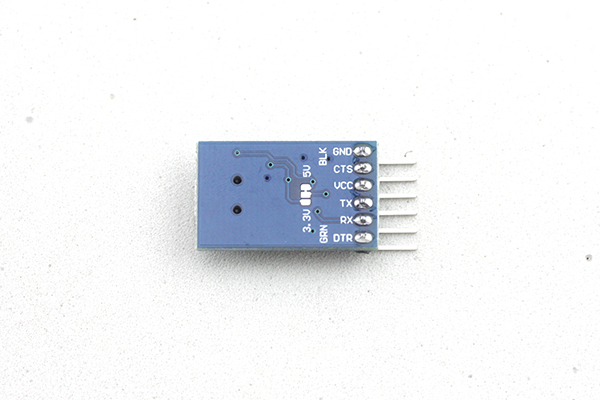 На гребёнку для подключения выведено всё необходимое – RX и TX для обмена данными, питание и сигнал DTR для автоматического сбора перед началом прошивки. Также выведен CTS для согласования с устройствами, требующими контроля потока.