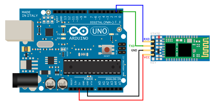 Bluetooth модуль HC-06 предназначен для беспроводного соединения контроллеров Arduino, STM8, STM32 с другими устройствами, таких как телефон, смартфон, планшет, PC, ПК, Android и другие совместимые блютус устройства. Подключение блютуз HC-06 к Ардуино производится по UART к выводам RX и TX.
