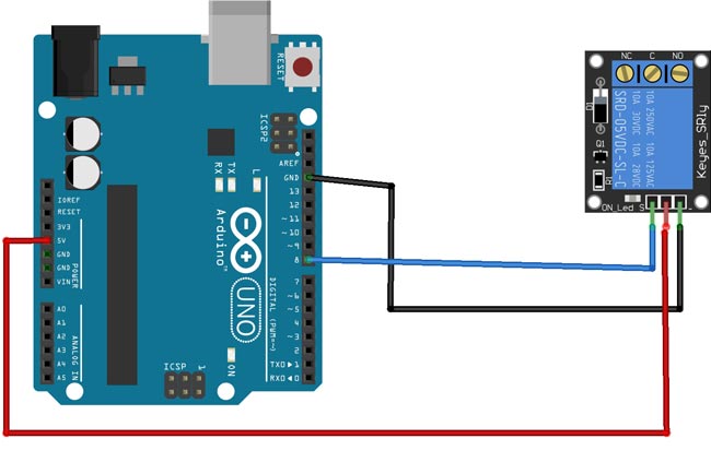 Для подключения релейного модуля к управляющему устройству используется 10-пиновый интерфейс. Контакты GND и VCC для подключения +5В, выводы IN1 – IN8 для подключения управляющего сигнала. Для подключения управляемых приборов к реле на плате присутствуют 24-контакта-зажима. Питание релейного модуля осуществляется или от управляющего устройства, или от внешних источников питания. Если нужна полная оптическая изоляция, необходимо убрать перемычку Vcc to JDVcc и подключить питание от внешнего блока к выводу JDVcc и Gnd с платы. В противнос случае, можно взять питание с платы Arduino и установить перемычку Vcc to JD-Vcc.