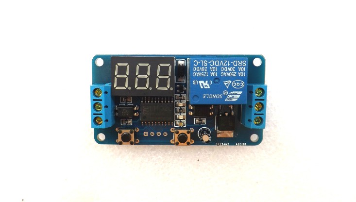 Для настройки времени задержки на корпусе модуля есть две кнопки, обозначенные K1 и K2. Модуль YYA-3 имеет возможность настройки времени задержки включения и времени выключения. После первого нажатия кнопки K1 включается режим настройки времени задержки выключения. Мигает первая цифра (сотни), с помощью кнопки K2, выставляем нужное значение от 0 до 9, цифры переключаются по кругу. Переключение на следующий разряд производится нажатием кнопки K1. Управление значениями задежки (включения, выключения) актуально для обоих режимов и всех разрядов (сотен ,десятков, единиц, десятых доль). Четвертое нажатие включает режим настройки времени задержки включения. Настройка проводится по аналогии.После седьмого нажатия происходит выход из режима настройки и включается режи