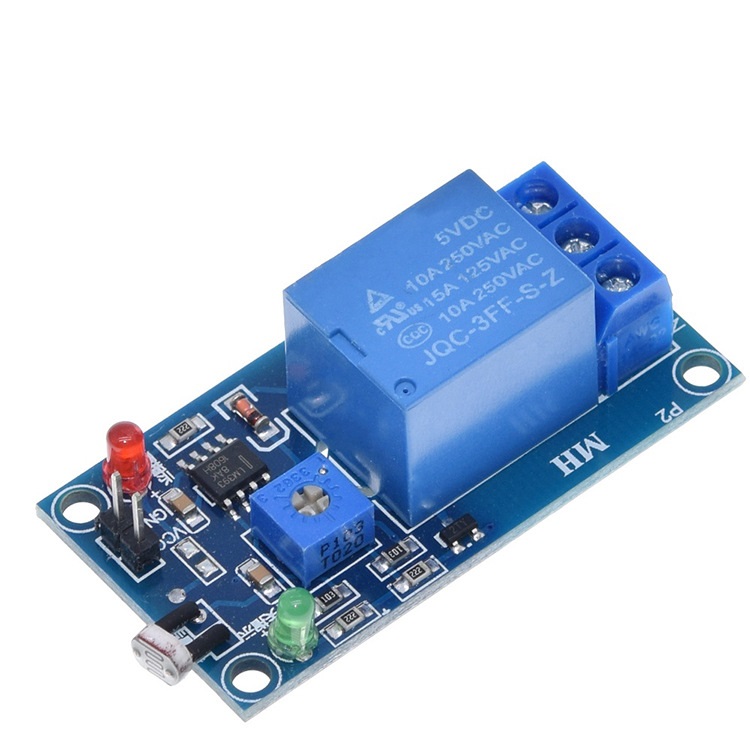 Модуль реле позволяет управлять нагрузкой переменного (250В/10А) или постоянного (30В/10А) тока в зависимости от установки порогового значения уровня освещенности. Если уровень освещенности опускается ниже установленного порога, то реле замыкается.