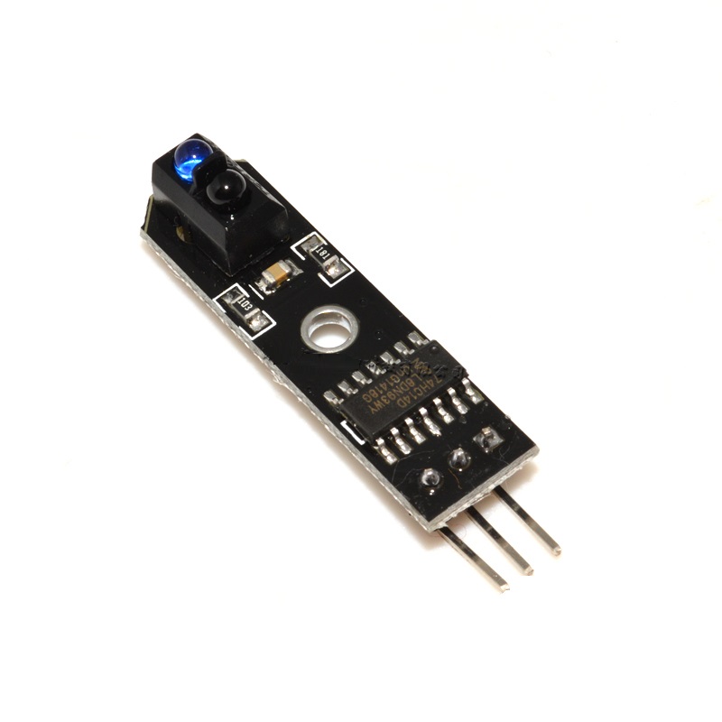 Инфракрасный датчик обнаружения препятствия/линии состоит из инфракрасного излучателя и приемника. Инфракрасный излучатель испускает инфракрасные лучи, которые при возникновении препятствия, отражаются от него, а приемник фиксирует отраженные лучи. Таким образом датчик позволяет обнаружить ближайшие препятствия, а также черный цвет. Датчик возвращает показания в зависимости от обнаружения черного (возвращает 0) или белого (возвращает 1) цветов.