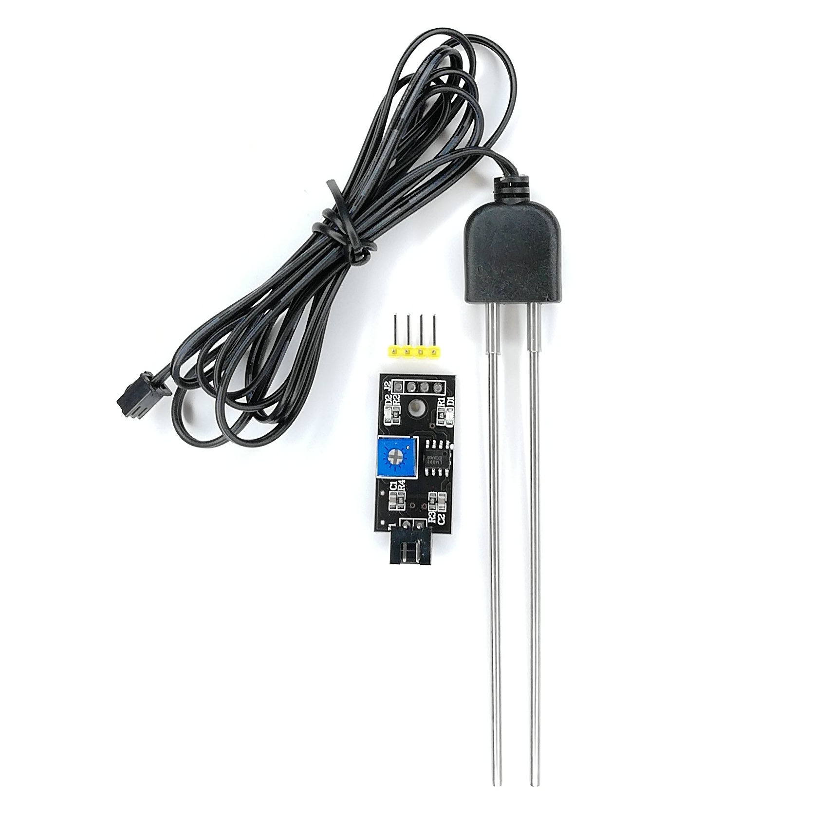 Данный датчик состоит из 2 основных частей: датчик влажности почвы на кабеле длиной около 110 см и модуль обработки данных с компаратором, которые соединяются между собой с помощью специального разъема.