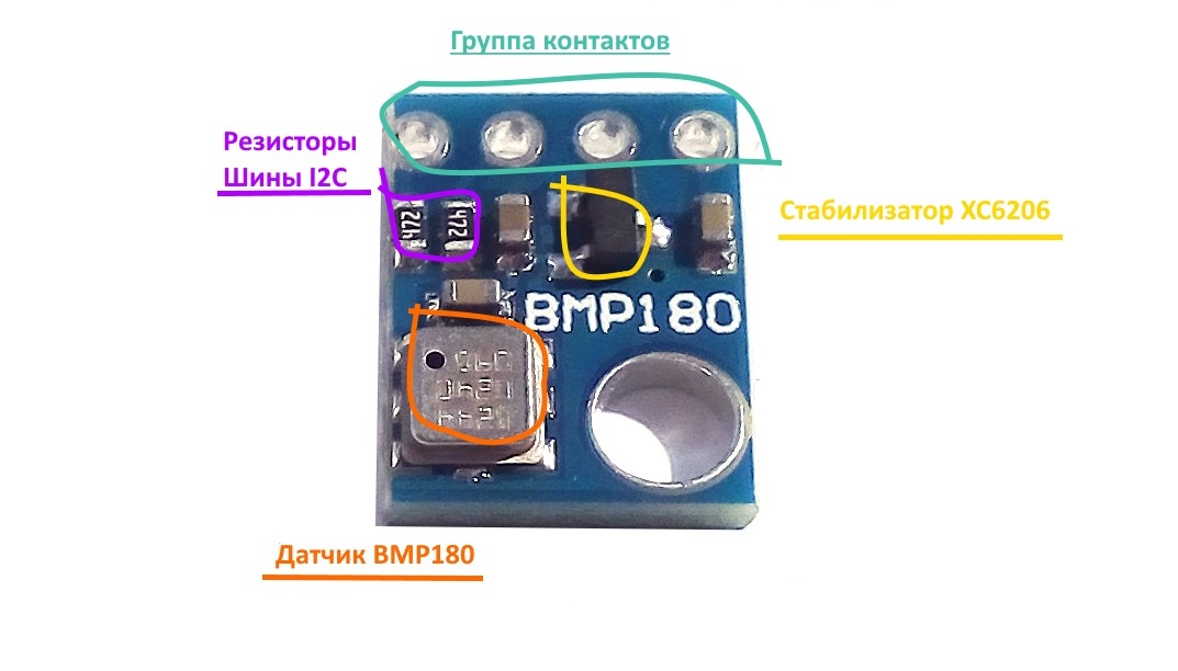 Принципиальная схема датчика BMP180, показана ниже.