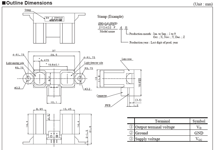 Характеристики Инфракрасный датчик 2Y0A02
