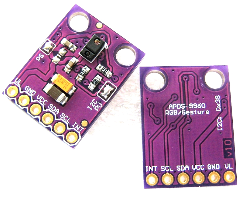 Это модуль с установленным на него датчиком APDS-9960, который способен определять RGB цвета, освещенность окружающего пространства, измерять расстояние и бесконтактно определять жесты