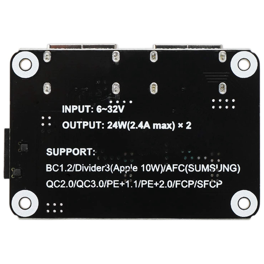 - Выходное напряжение: по умолчанию 5 В, автоматически настраивается между 3 ~ 12 В после запуска быстрой зарядки.