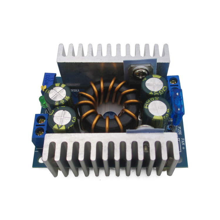 DC Dc понижающий преобразователь 200W 12A 4.5-30V в 0.8-28V - понижающий преобразователь напряжения на 200 Вт (при использовании на максимальную мощность необходимо активное охлаждение, в комплекте не идет). Также надо быть аккуратным при подключении, т.к. в устройстве не предусмотрена защита от переполюсовки входного напряжения. Подключение происходит посредством клемм. На плате присутствует индикаторный светодиод, яркость которого регулируется выходным напряжением. Для повышения выходного напряжения необходимо выкручивать подстроечный резистор по часовой стрелке, для понижения - против часовой.