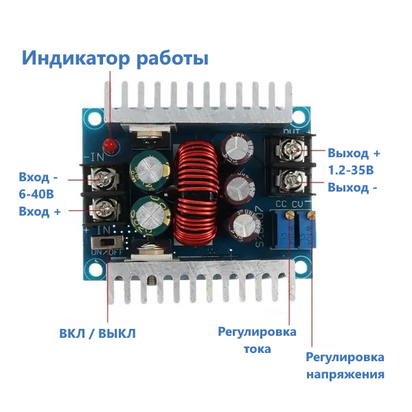 Характеристики Понижающий DC-DC 300Вт с регулировкой напряжения и тока