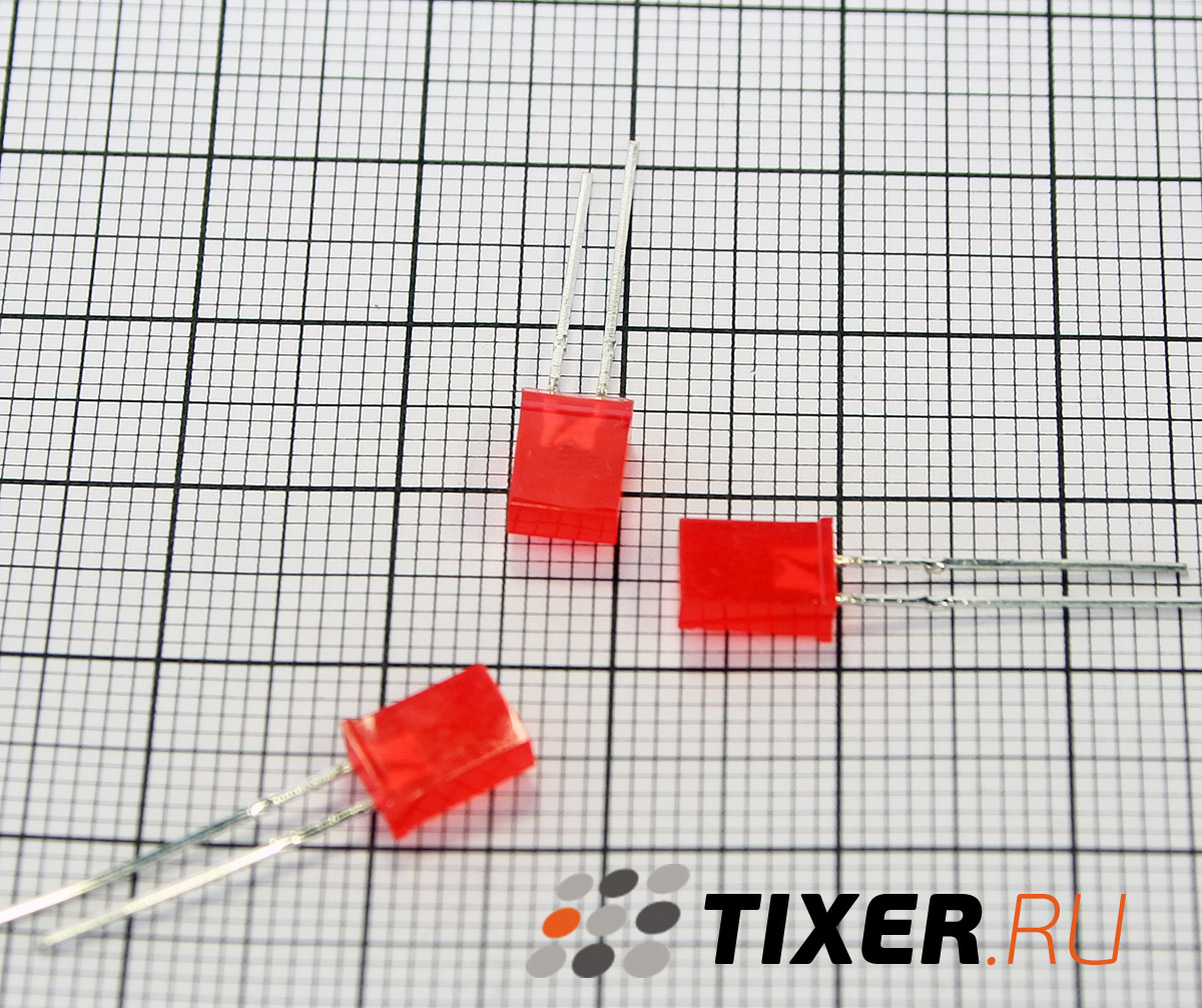Характеристики Светодиод 2x5x7мм 30mcd прямоугольный красный
