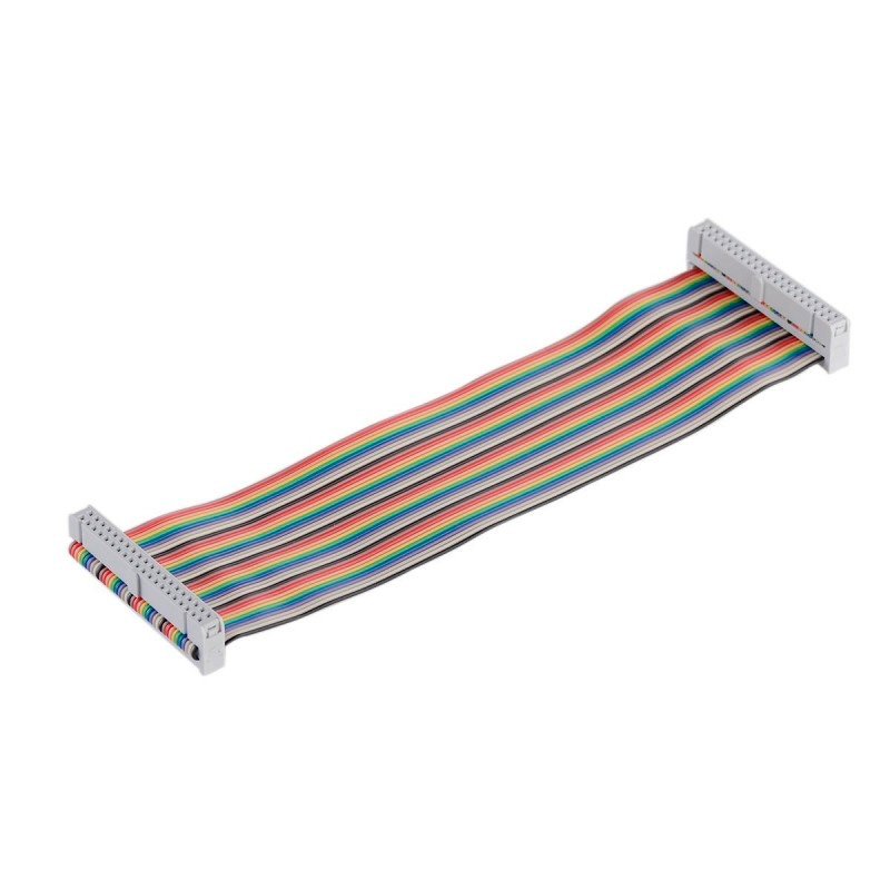 Шлейф имеет ширину 5.5 см и 21 см длину. Он отлично встаёт на 40-пиновую гребёнку контроллера. Из 40 pin у Raspberry Pi 12 приходятся только на общие пины и пины питания. Также 27 и 28 пины используются под платы расширения. Таким образом, по факту выходит только 28 GPIO-пинов.